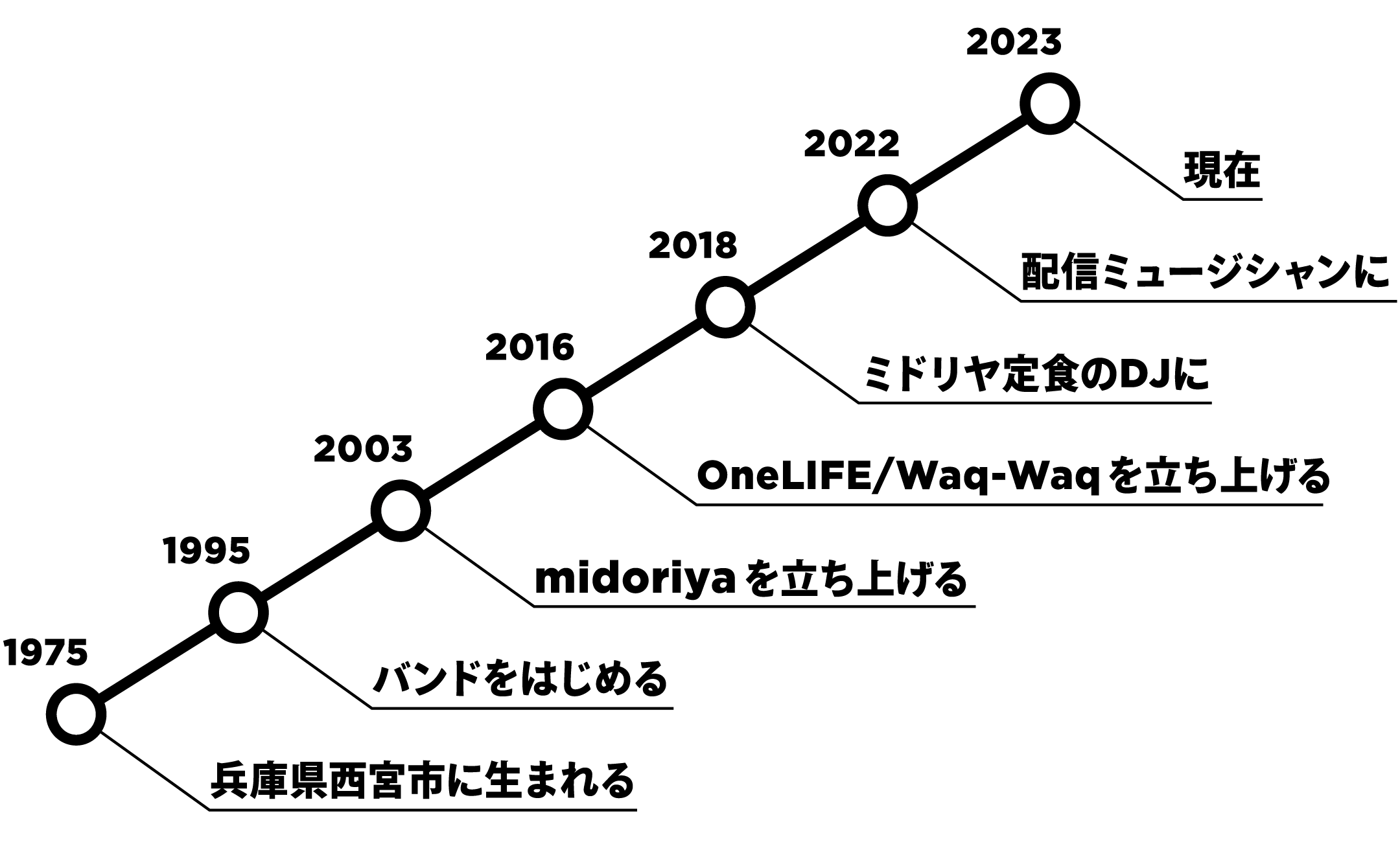 - ミドリヤを立ち上げる。プロ志向のバンド解散と同じころリサイクルショップに出会う。アルバイトに応募、面接の時点で一生この仕事をする!と路線変更。雇われ店長として修行したのちリサイクルショップ緑屋を長岡京市で創業。後に㈱緑屋となる。