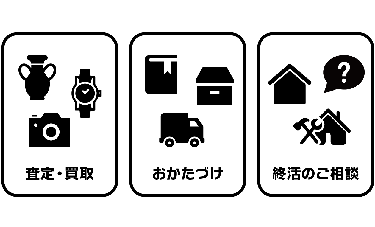 遺品整理や生前整理、不動産の明け渡しにともなって必要になるおかたづけ、事業所の整理、解体前の整理、等のあらゆるおかたづけに対応します。